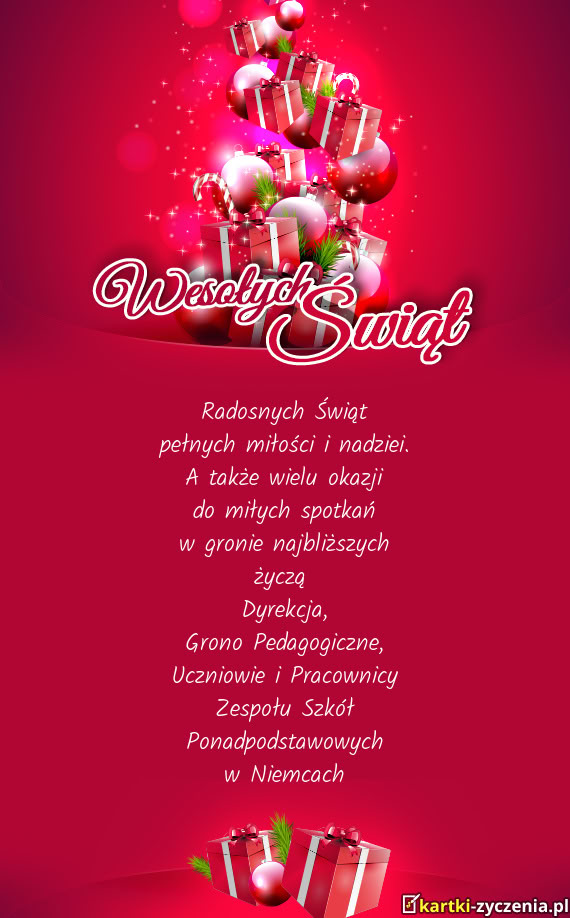 A także wielu okazji do miłych spotkań w gronie najbliższych życzą Dyrekcja