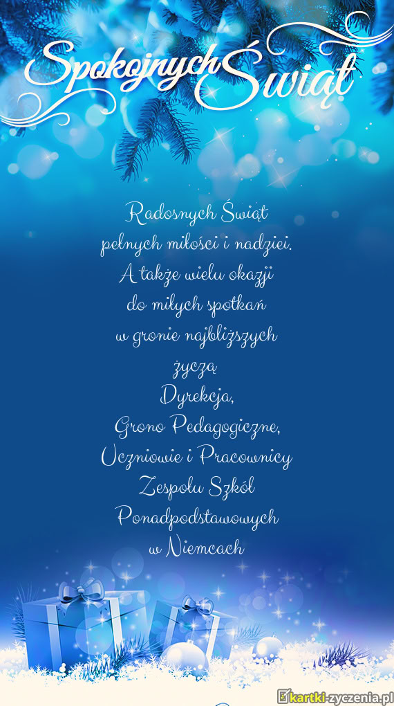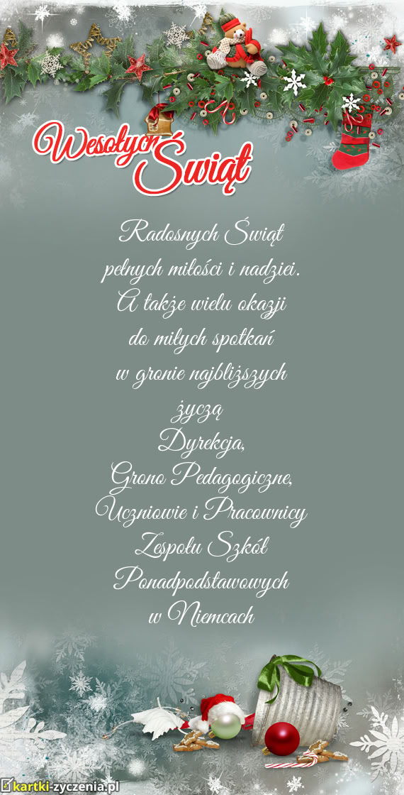 Radosnych Świąt pełnych miłości i nadziei. A także