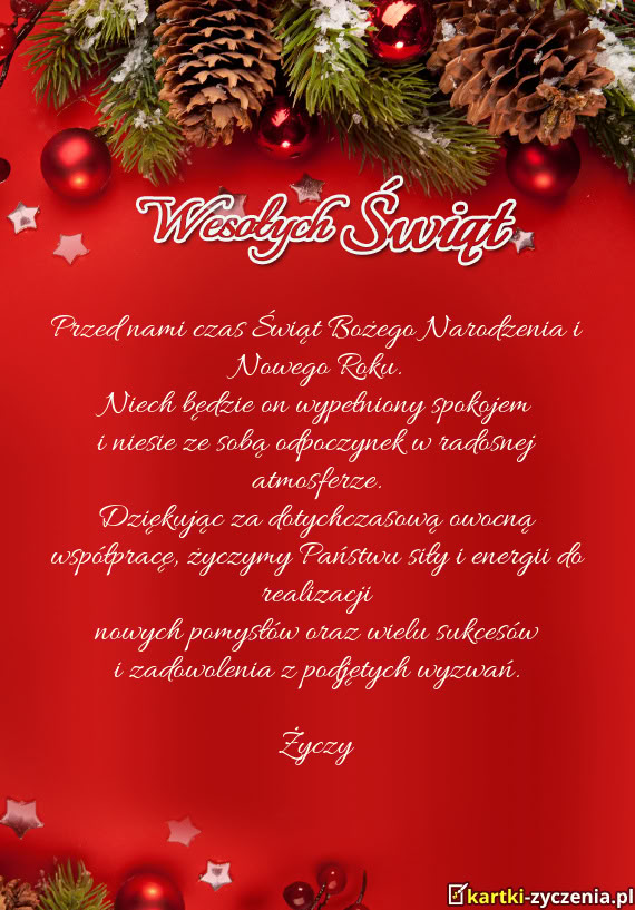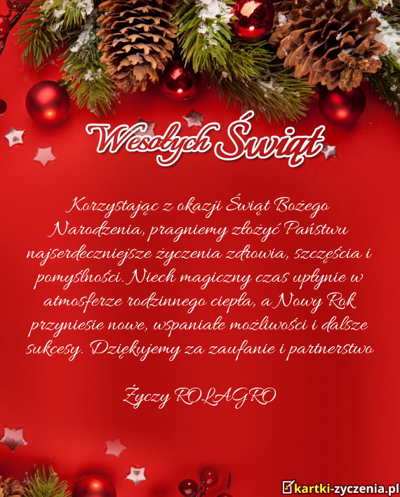 Korzystając z okazji Świąt Bożego Narodzenia, pragniemy złożyć Państwu najserdeczniejsze ży