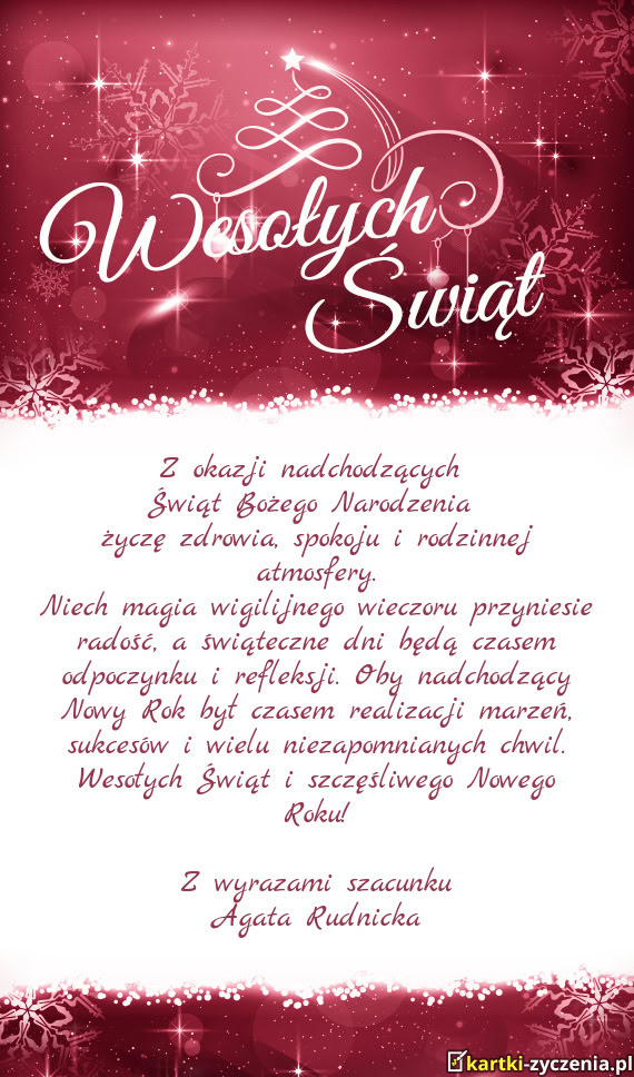 Niech magia wigilijnego wieczoru przyniesie radość, a świąteczne dni będą czasem odpoczynku i
