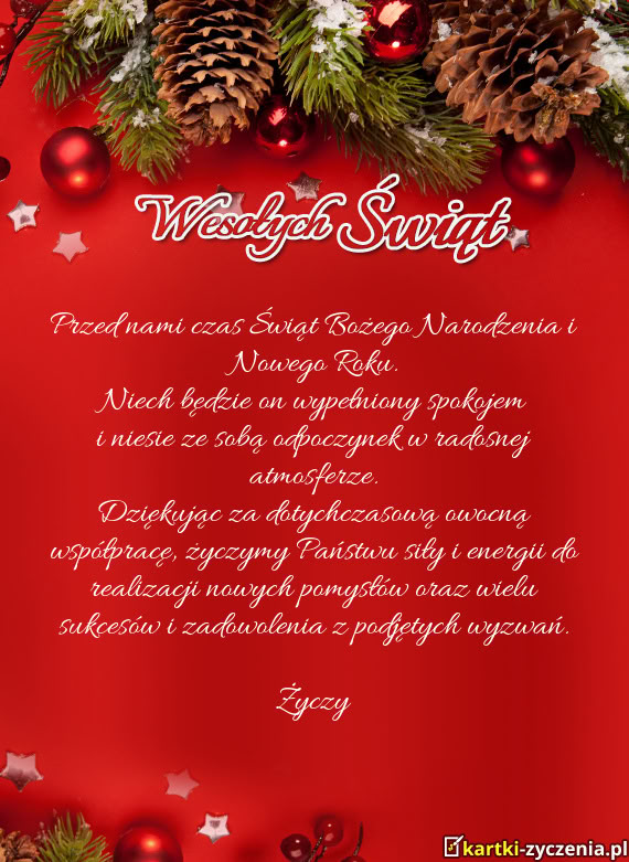 Najserdeczniejsze życzenia zdrowych, pogodnych i spokojnych Świąt Bożego Narodzenia