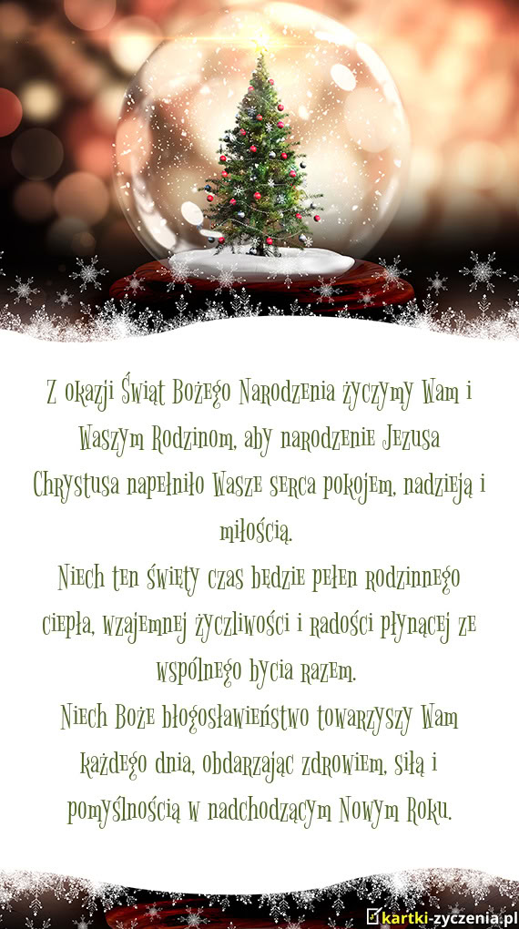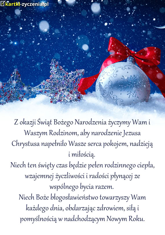 Z okazji Świąt Bożego Narodzenia życzymy Wam i Waszym Rodzinom, aby narodzenie Jezusa Chrystusa