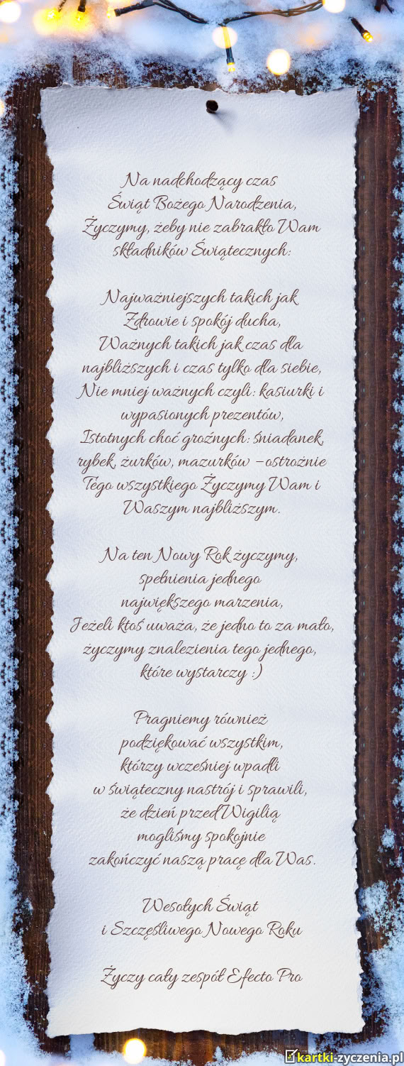 Z okazji nadchodzących Świąt Bożego Narodzenia pragnę przesłać najserdeczniejsze życzenia
