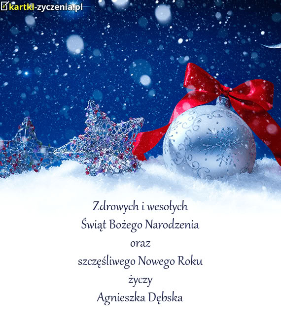 Zdrowych i wesołych Świąt Bożego Narodzenia oraz szczęśliwego Nowego Roku życzy Agnieszk
