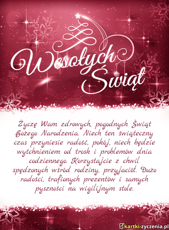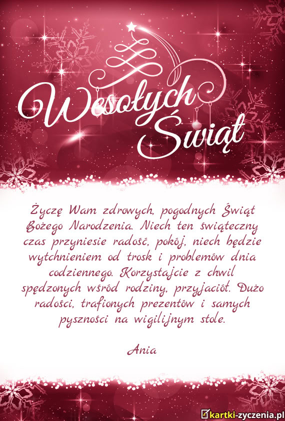 Życzę Wam zdrowych, pogodnych Świąt Bożego Narodzenia. Niech ten świąteczny czas przyniesie r