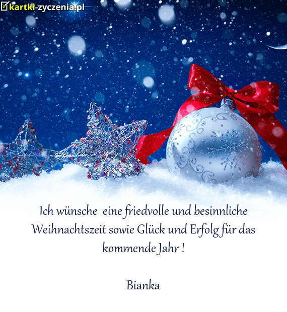Ich wünsche eine friedvolle und besinnliche Weihnachtszeit sowie Glück und Erfolg für das kommen
