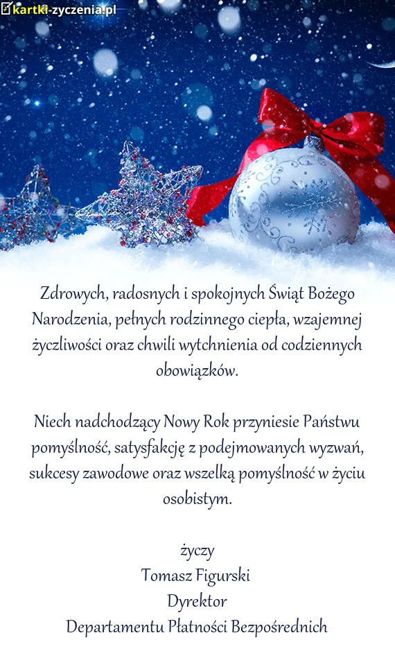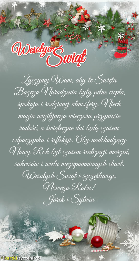 Zdrowych, radosnych i spokojnych Świąt Bożego Narodzenia, pełnych rodzinnego ciepła, wzajemnej