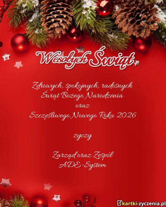 Radosnych Świąt Bożego Narodzenia oraz Szczęśliwego Nowego Roku 2026 życzy Zarząd