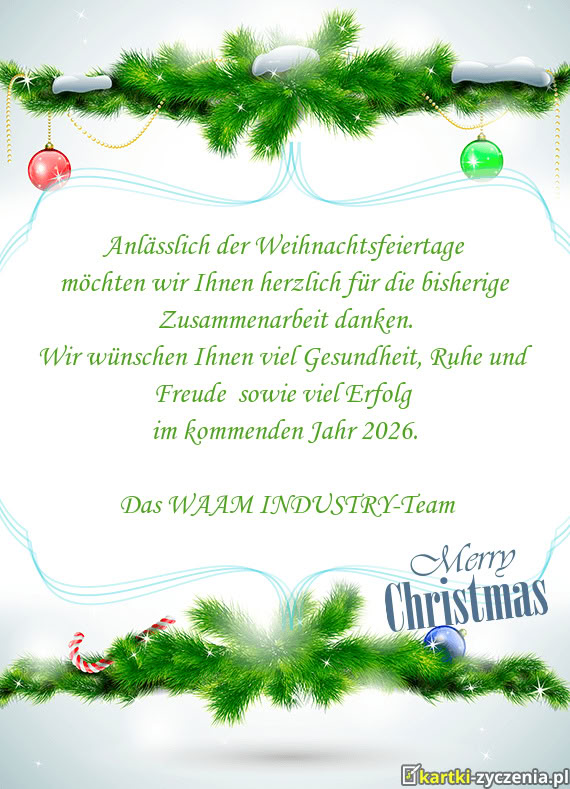 Dziękujemy za dotychczasowe zaufanie oraz owocną współpracę w mijającym roku 2025