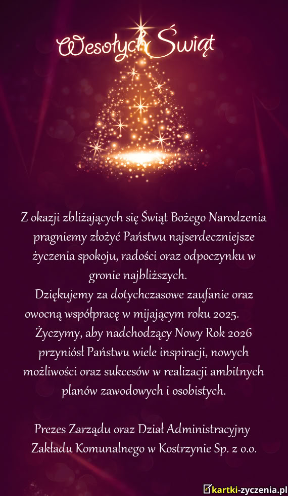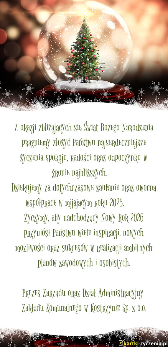 Życzymy, aby nadchodzący Nowy Rok 2026 przyniósł Państwu wiele inspiracji, nowych możliwości