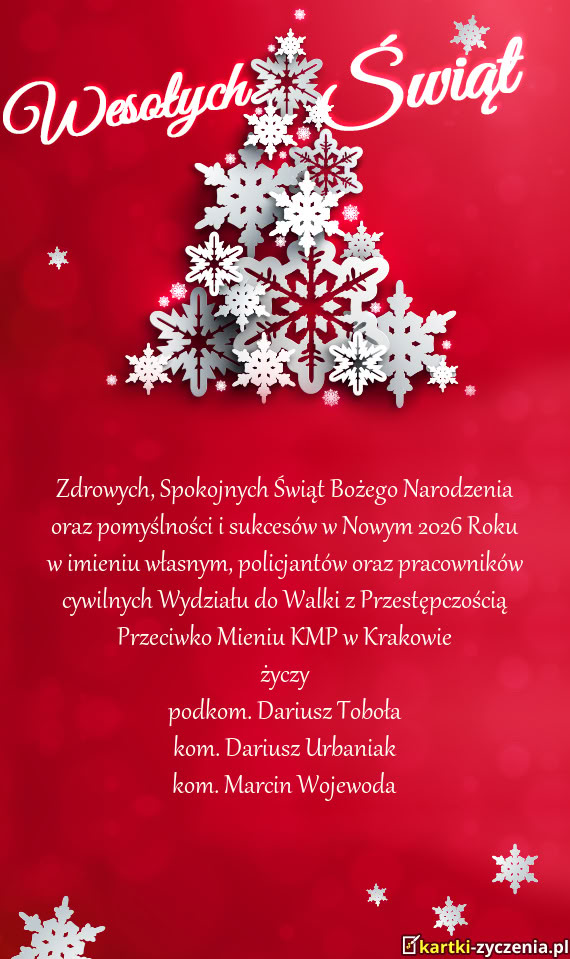 Zdrowych, Spokojnych Świąt Bożego Narodzenia oraz pomyślności i sukcesów w Nowym 2026 Roku