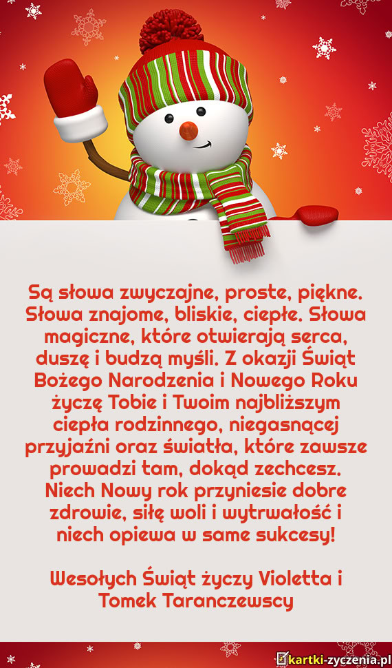 Wesołych Świąt życzy Violetta i Tomek Taranczewscy