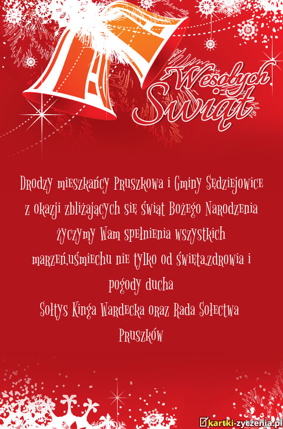Drodzy mieszkańcy Pruszkowa i Gminy Sędziejowice z okazji zbliżających się świąt Bożego Naro