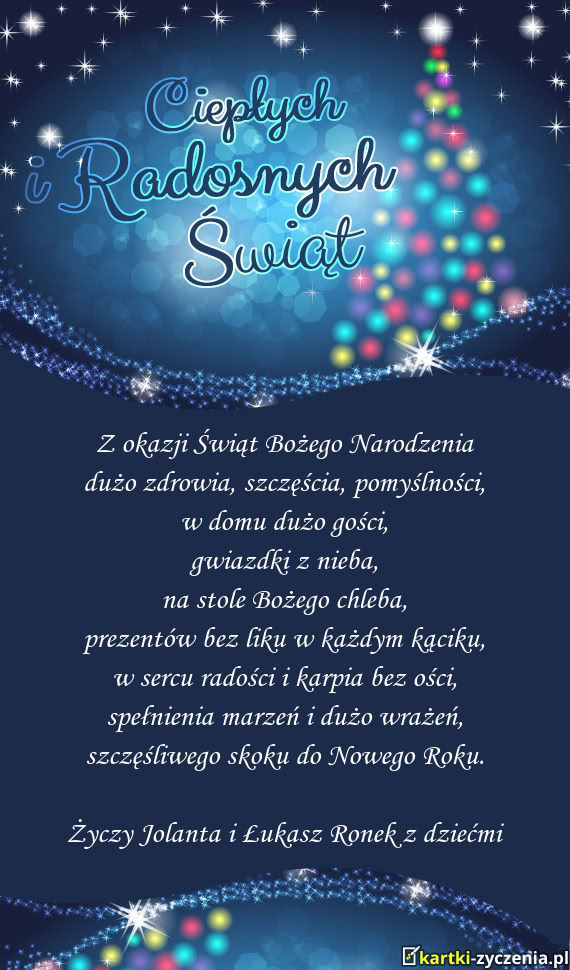 Życzy Jolanta i Łukasz Ronek z dziećmi