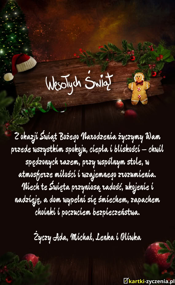 Z okazji Świąt Bożego Narodzenia życzymy Wam przede wszystkim spokoju, ciepła i bliskości –