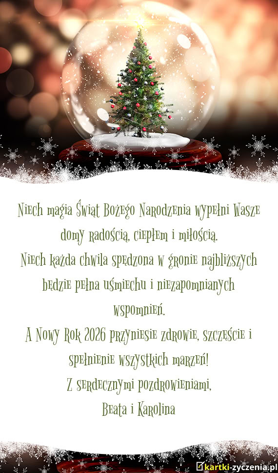 Niech magia Świąt Bożego Narodzenia wypełni Wasze domy radością, ciepłem i miłością