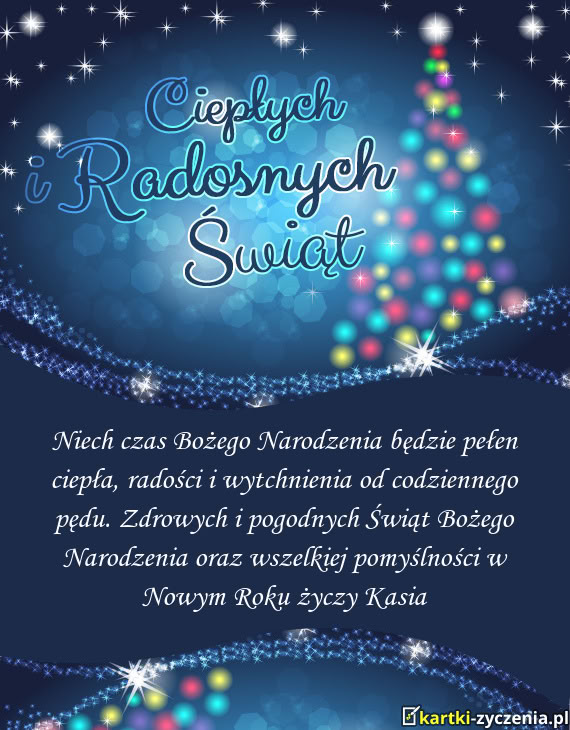 Drowych i pogodnych Świąt Bożego Narodzenia oraz wszelkiej pomyślności w Nowym Roku życzy Kasi
