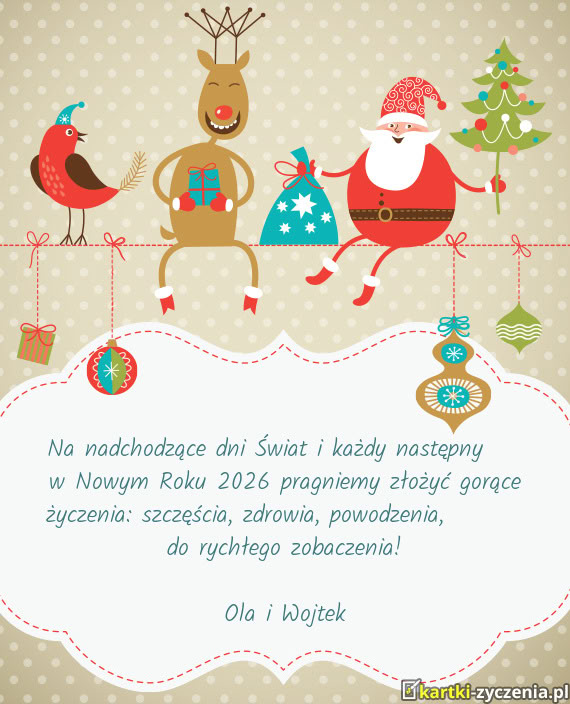 Na nadchodzące dni Świat i każdy następny w Nowym Roku 2026 pragniemy złożyć gorące życ