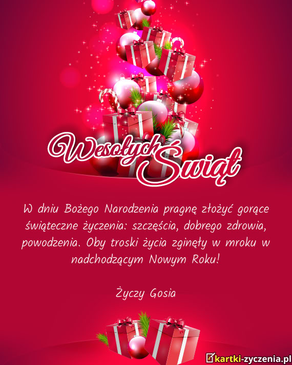 W dniu Bożego Narodzenia pragnę złożyć gorące