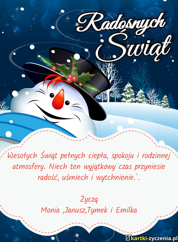 Wesołych Świąt i szczęśliwego Nowego Roku życzy Marcin,Kasia,Karol i Kacper