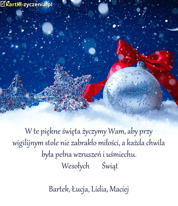 W te piękne święta życzymy Wam, aby przy wigilijnym stole nie zabrakło miłości, a każda chwi