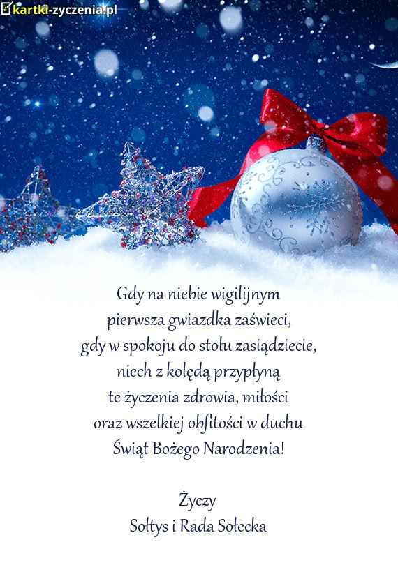 Miłości oraz wszelkiej obfitości w duchu Świąt Bożego Narodzenia! Życzy Sołtys i Rad