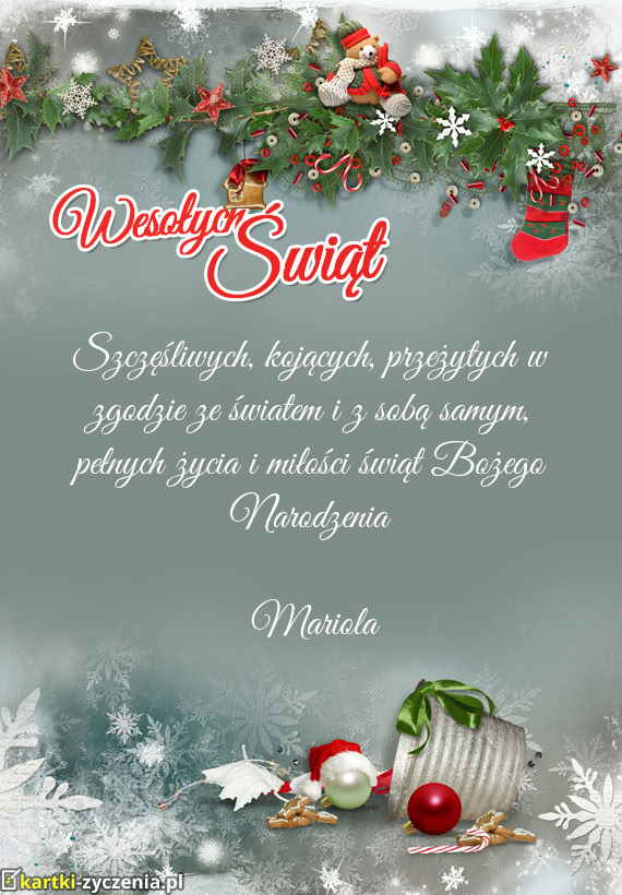 Pełnych życia i miłości świąt Bożego Narodzenia Mariola