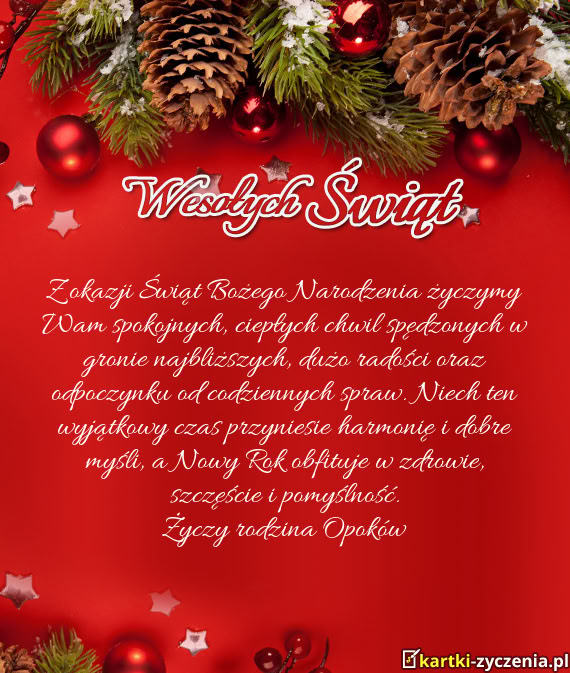 Życzę Ci spokojnych Świąt Bożego Narodzenia spędzonych w gronie najbliższych, niech ten czas