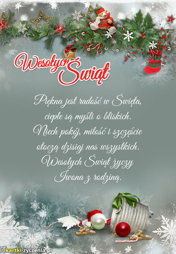 Niech te święta Bożego Narodzenia przyniosą Ci wiele radości – wspólnie spędzonego czasu, r