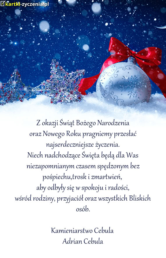 Oraz Nowego Roku pragniemy przesłać najserdeczniejsze życzenia