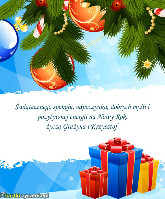 Świątecznego spokoju, odpoczynku, dobrych myśli i pozytywnej energii na Nowy Rok