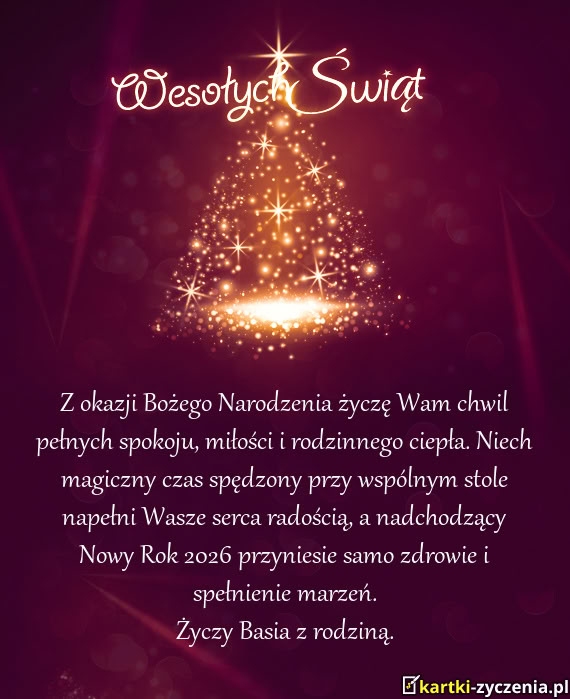 Niech magiczna moc Wigilijnego Wieczoru przyniesie spokój, radość i nadzieję