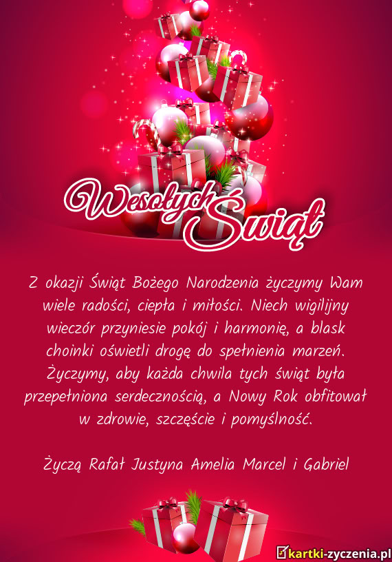 Z okazji Świąt Bożego Narodzenia życzymy spokojnych, radosnych dni