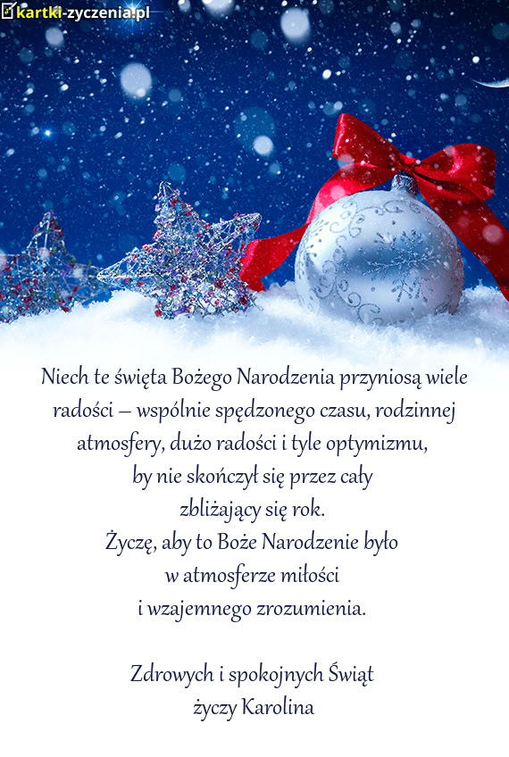 Niech tegoroczne święta Bożego Narodzenia przyniosą Wam wiele radości – wspólnie spędzonego