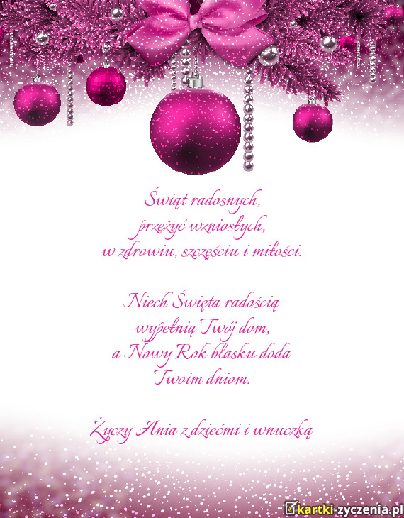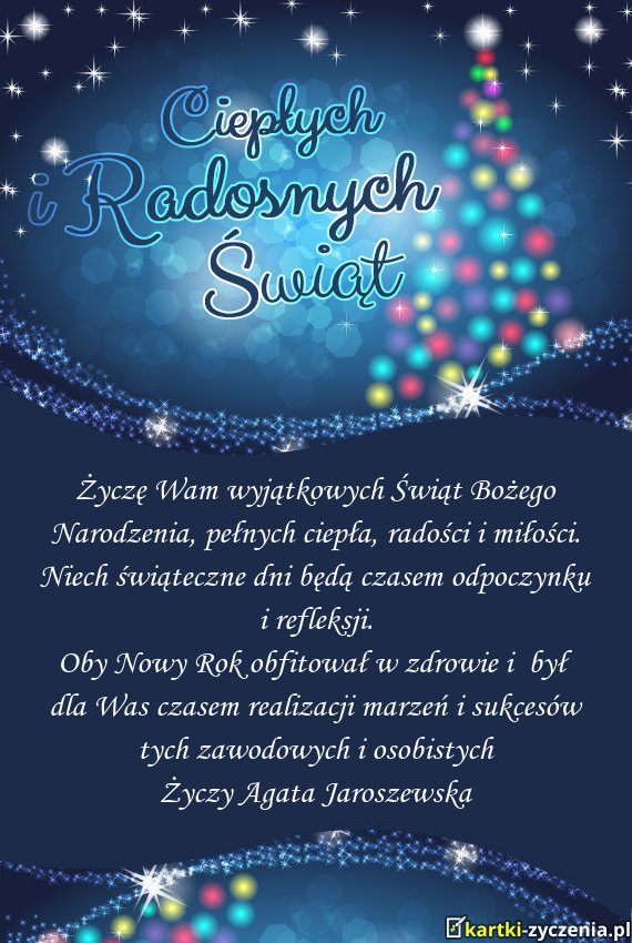 Życzę Wam wyjątkowych Świąt Bożego Narodzenia, pełnych ciepła, radości i miłości. Niech świąteczne dni będą czasem odpoczynku i refleksji.