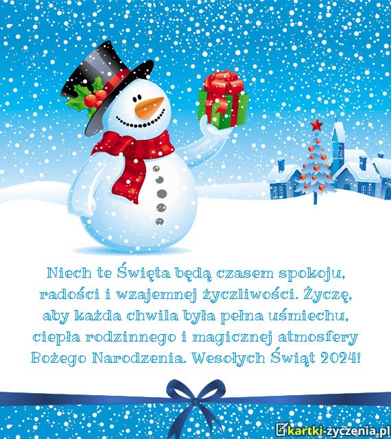 Niech te Święta będą czasem spokoju, radości i wzajemnej życzliwości. Życzę, aby każda chwila była pełna uśmiechu, ciepła rodzinnego i magicznej atmosfery Bożego Narodzenia. Wesołych Świąt 2024!