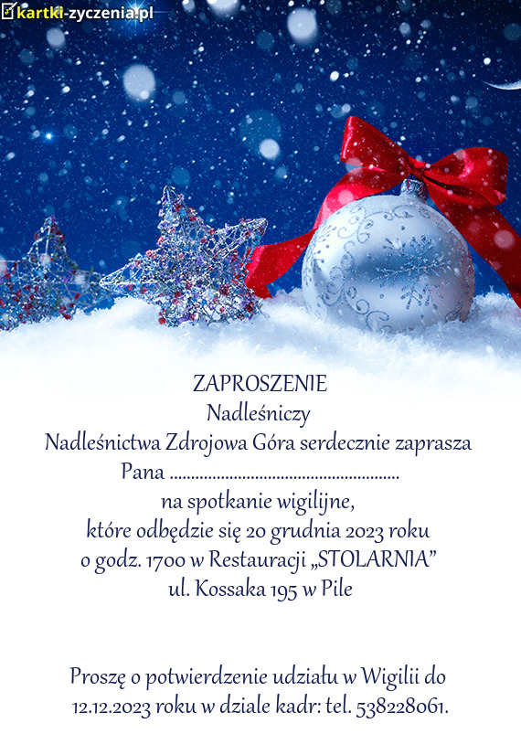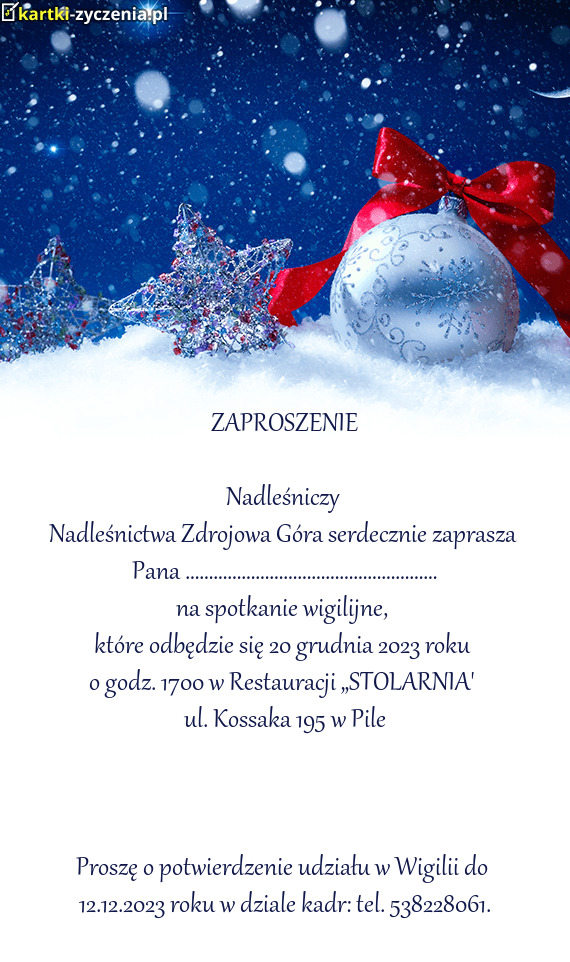 Proszę o potwierdzenie udziału w Wigilii do