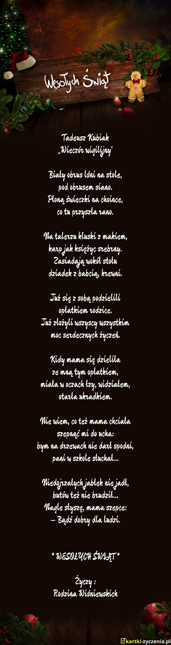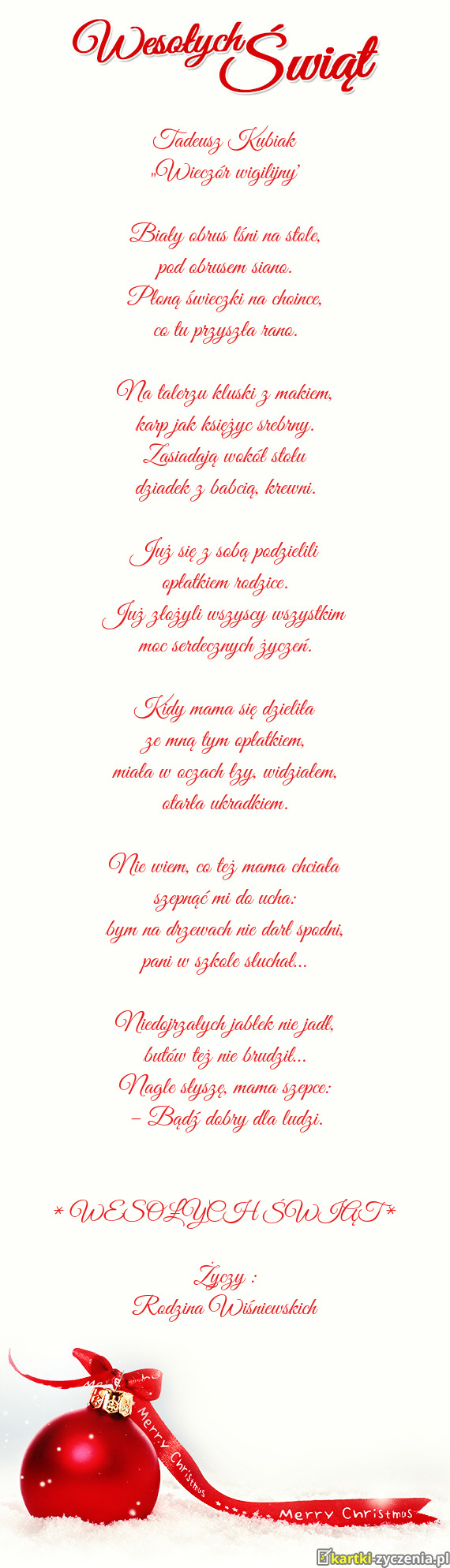 Biały obrus lśni na stole - Gotowa Kartka bożonarodzeniowa