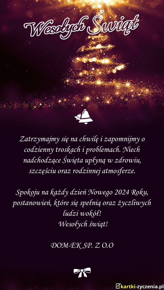 Zatrzymajmy się na chwilę i zapomnijmy o codzienny troskach i problemach. Niech nadchodzące Święta upłyną w zdrowiu, szczęściu oraz rodzinnej atmosferze.