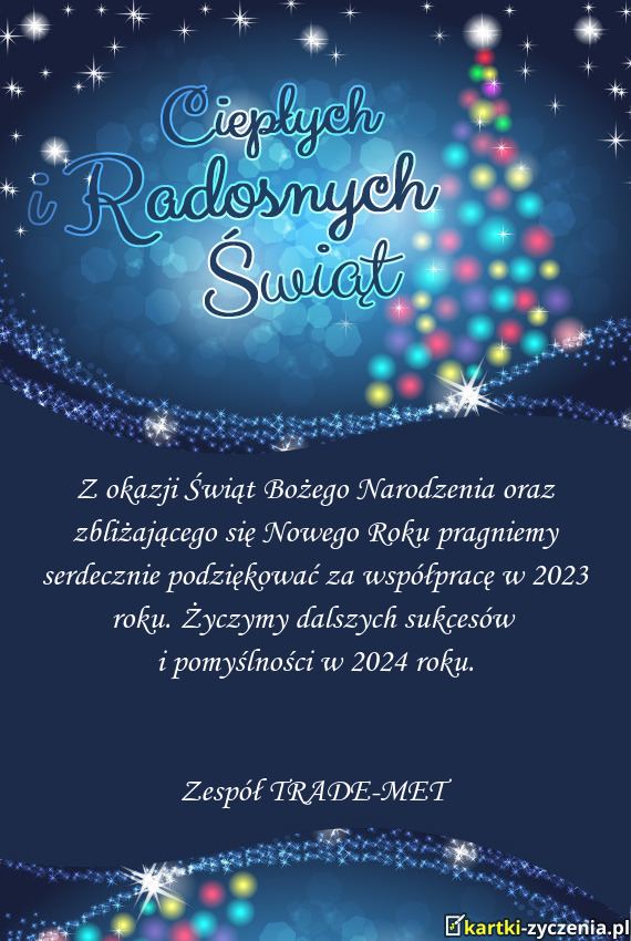 Z okazji Świąt Bożego Narodzenia oraz zbliżającego się Nowego Roku pragniemy serdecznie podziękować za współpracę w 2023 roku. Życzymy dalszych sukcesów