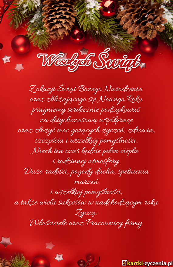 Spokojnych i radosnych Świąt Bożego Narodzenia, wszelkiej pomyślności w Nowym Roku oraz sukcesów w życiu osobistym i zawodowym życzy: