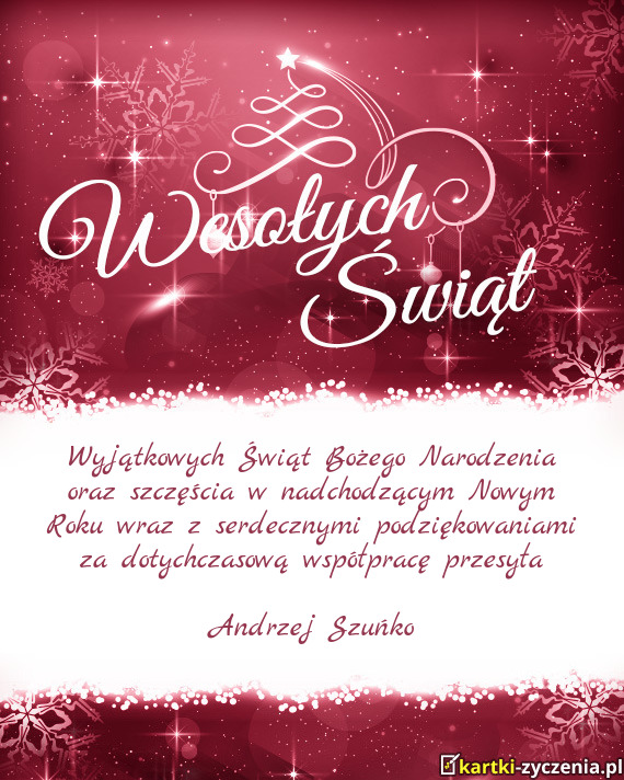 Niech ta świąteczna pora przyniesie refleksję nad życiem i pomoże nam kształtować przyszłość w harmoni że sobą.