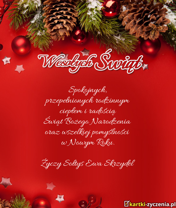 Wszystkim moim Kontrahentom chcę złożyć najserdeczniejsze życzenia: spokojnych i pełnych radości Świąt Bożego Narodzenia, a także wielu sukcesów w nadchodzącym roku.