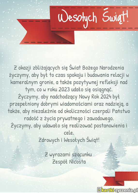 A relacji w kameralnym gronie, a także pozytywnej refleksji nad tym, co w roku 2023 udało się osi - Gotowa Kartka bożonarodzeniowa