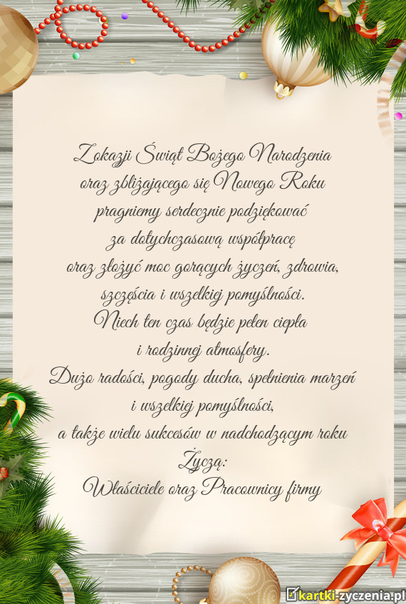A także wielu sukcesów w nadchodzącym roku Życzą - Gotowa Kartka bożonarodzeniowa