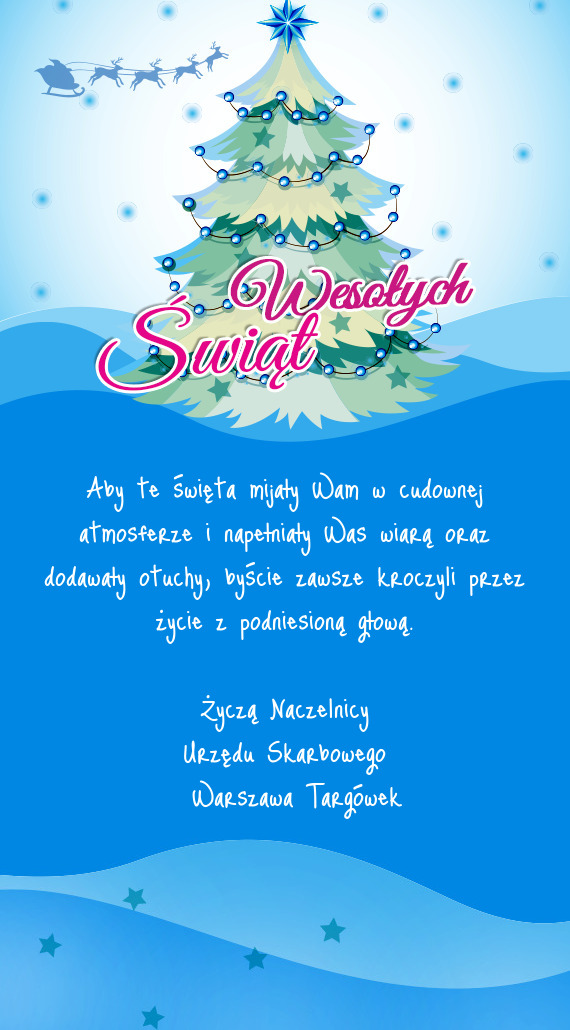 Aby te święta mijały Wam w cudownej atmosferze i napełniały Was wiarą oraz dodawały otuchy, byście zawsze kroczyli przez życie z podniesioną głową.