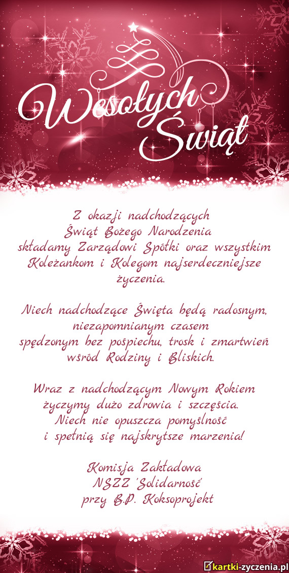 Z okazji nadchodzących Świąt Bożego Narodzenia życzymy,