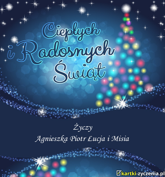 Agnieszka Piotr Łucja i Misia - Gotowa Kartka bożonarodzeniowa
