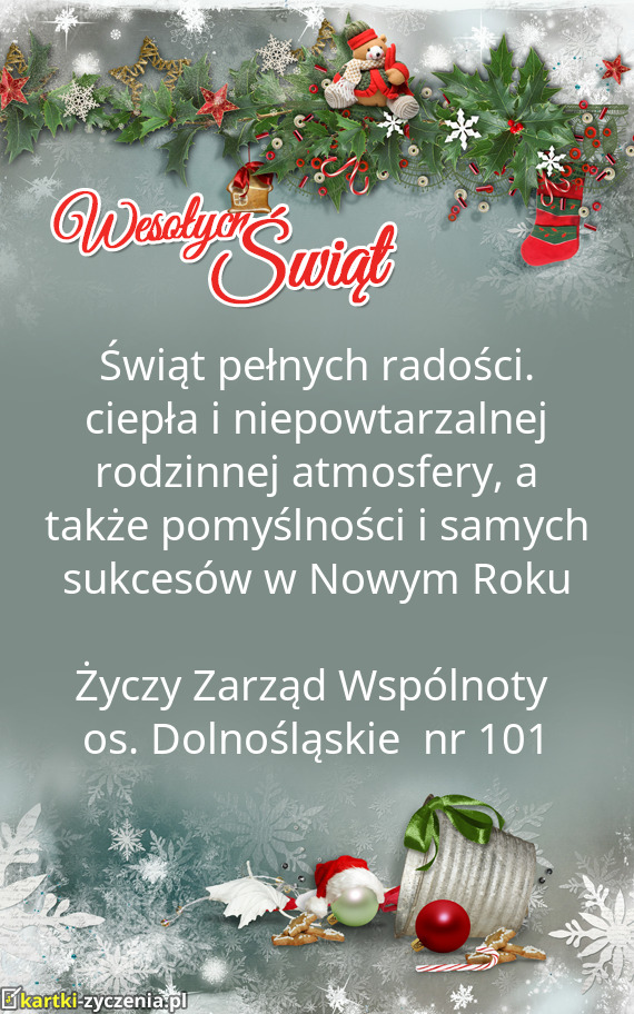 Świąt pełnych radości. ciepła i niepowtarzalnej rodzinnej atmosfery, a także pomyślności i samych sukcesów w Nowym Roku