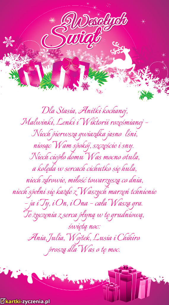 Ania, Julia, Wojtek, Lusia i Chihiro - Gotowa Kartka bożonarodzeniowa